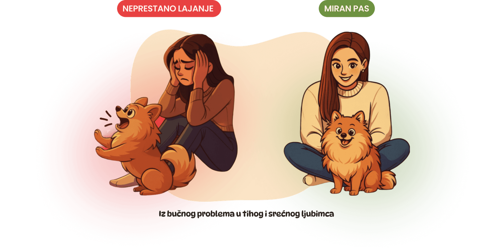 Umesto beskrajne buke i stresa, dobićeš psa koji je smiren, siguran i poslušan. Tvoj dom postaje mirnije i prijatnije mesto, odnosi sa komšijama se popravljaju, a ti možeš da uživaš u ljubavi svog Pomeranca – bez nervoze i beskrajnog laveža.
